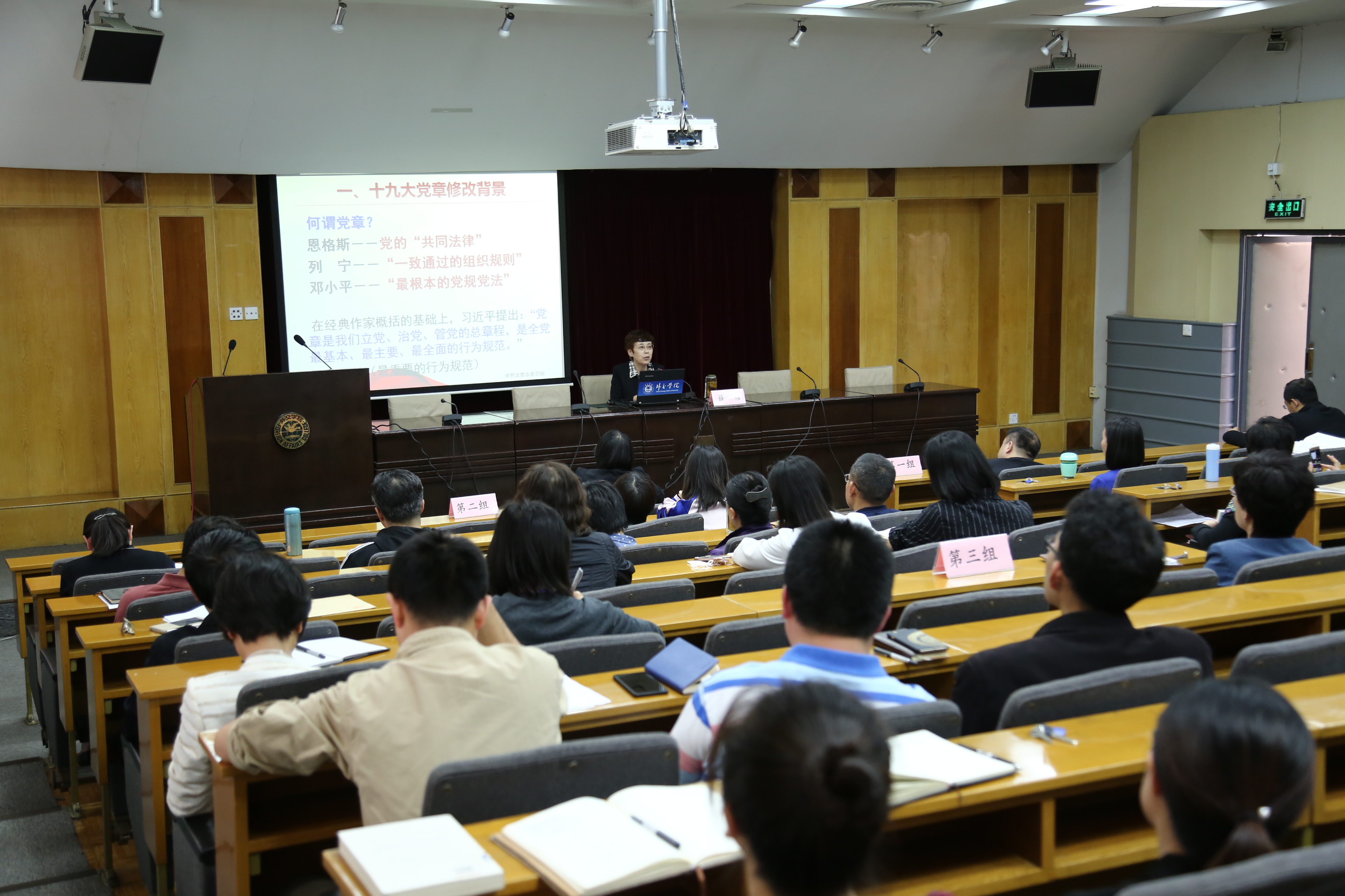 2018年4月27日, beat365官方网站学习党的十九大精神轮训班进行了党章修改专题学习,邀请中共北京市委党校薛梅教授作题为“与时俱进话党章”的讲座。