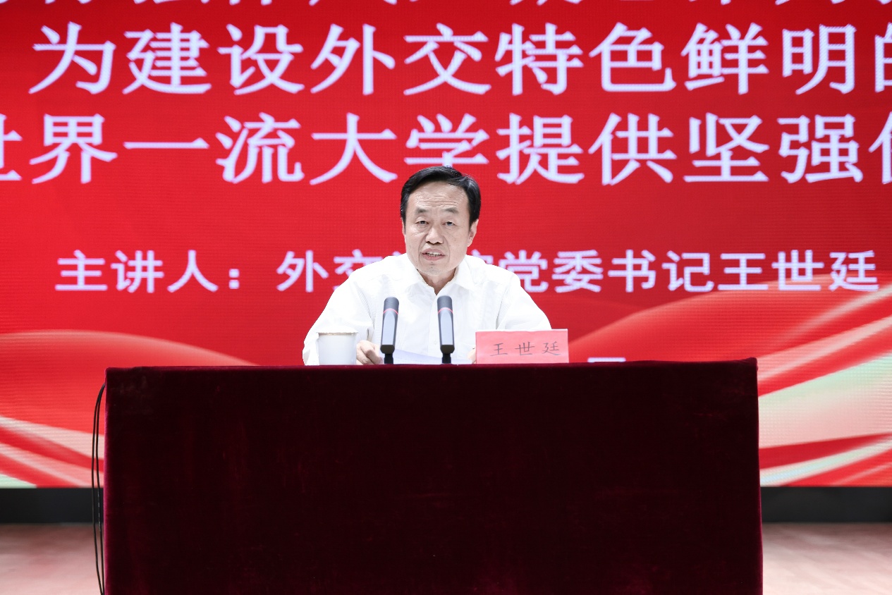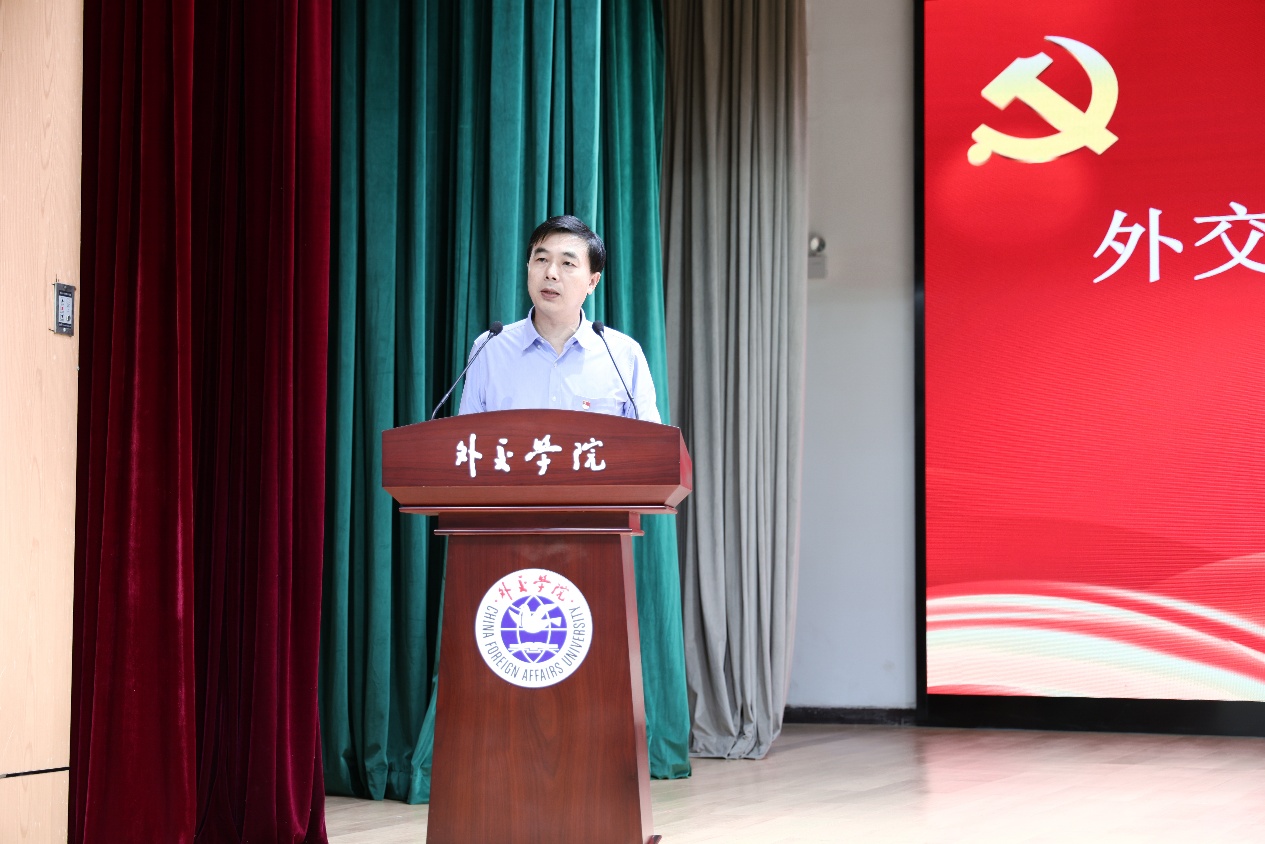 党委副书记、院长王帆同志主持大会并作总结讲话,要求全校师生党员要认真学习领会党课内容,各级党组织要继续推进学习教育和系统整治走深走实,确保成效,推动学院事业高质量发展,为中国特色大国外交作出新的贡献。