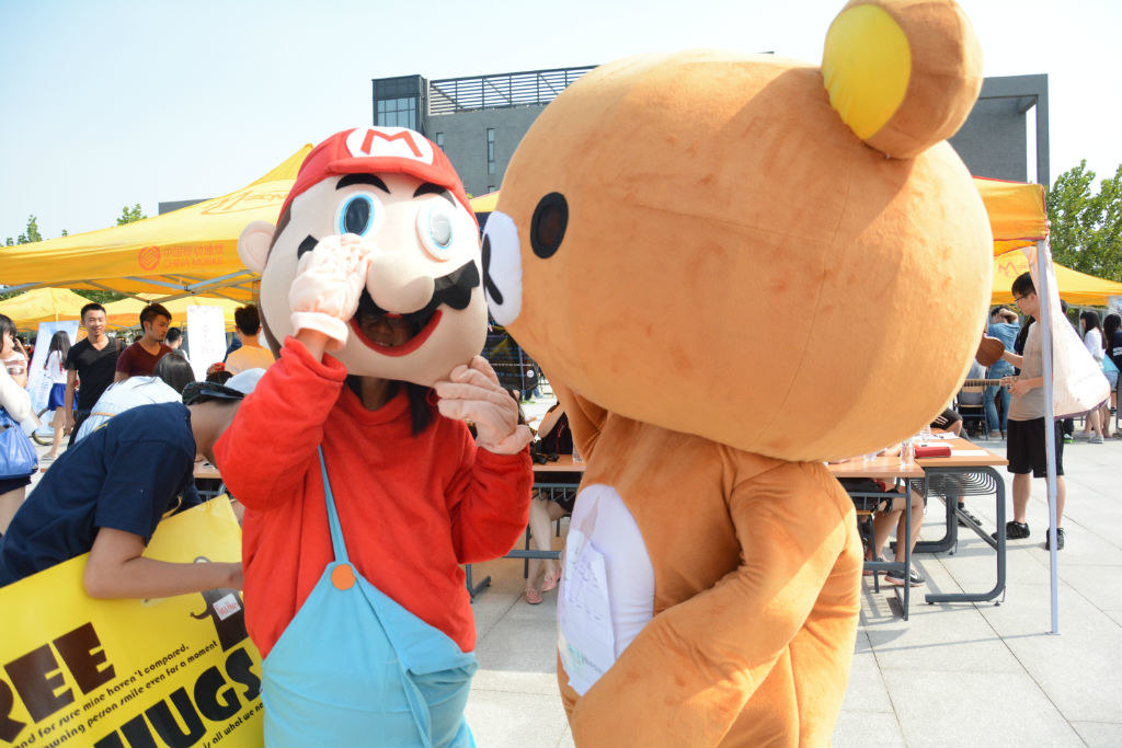 9月10日的“百团大战”现场,各种展牌、海报书写着各部门往年的荣誉和举办的活动,印有社团活动剪影的明信片、卡贴等的小礼物则展示着各自社团的独特风采。为了吸引更多新生前来报名,许多社团纷纷拿出绝招,你方唱罢我登场。艺术团的成员秀街舞,奏吉他,多才多艺;实践中心为前来报名的同学准备了支教活动的明信片;学术部门很受有意于学术研究、模联等活动的同学欢迎;社团联合会下形形色色各种社团,你所想到的、想不到的都在这里;行政部门表面上都是严肃的正装,实则始终以平易近人的形象为同学们服务,为其他社团版块服务;媒体中心的三家媒体在进行各自纳新活动的同时,也不忘采访报道“百团大战”。