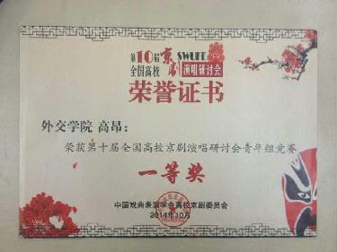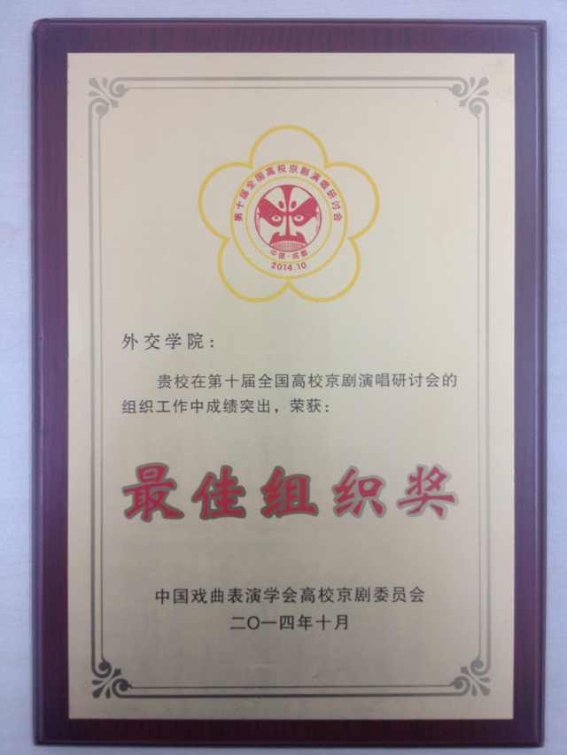 近日,由中国戏曲表演学会主办的“第十届全国高校京剧演唱研讨会”在西南财经大学举行。院团委选派我校艺术团、2013级英语系高昂同学参加比赛。高昂同学在比赛中表现突出,荣获青年组竞赛一等奖,beat365荣获第十届全国高校京剧比赛最佳组织奖。