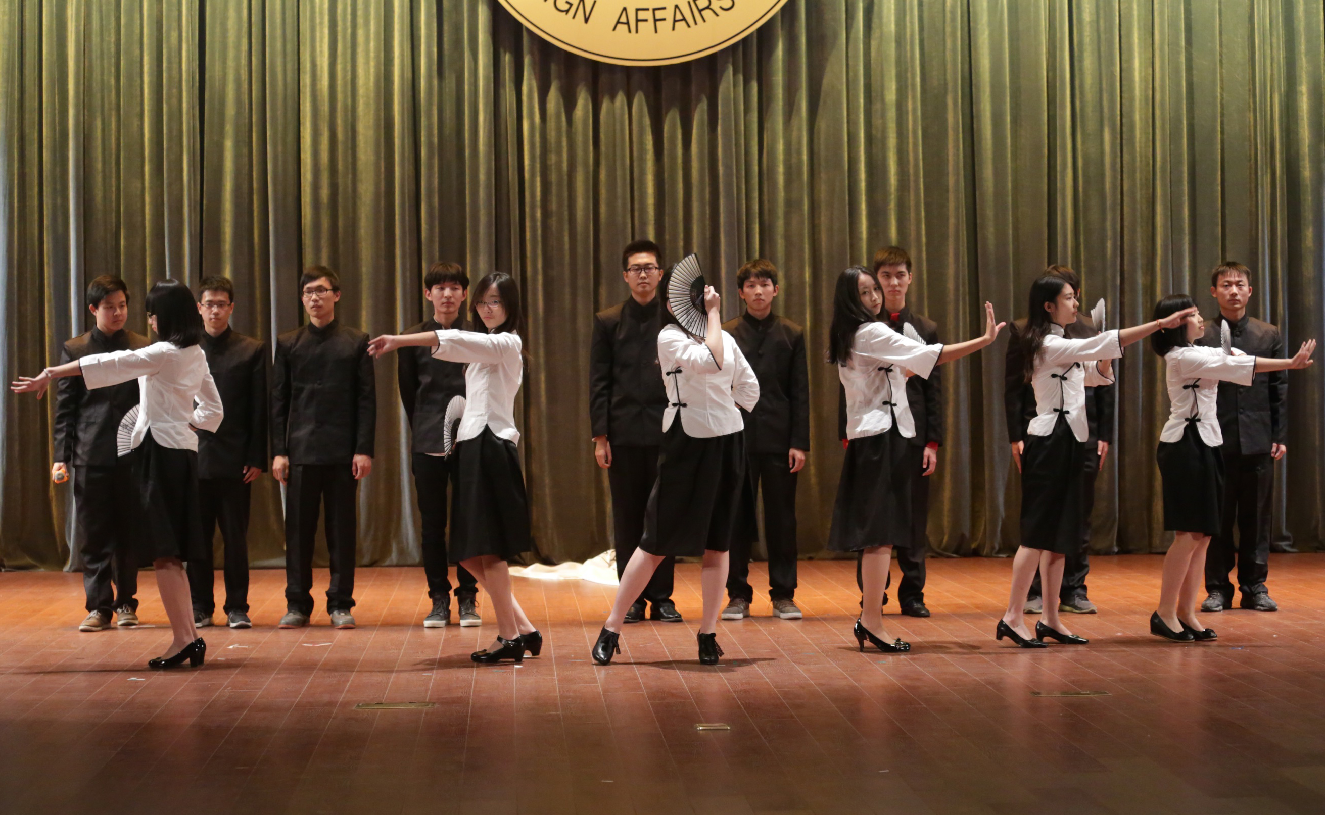随后,来自外交、外语、国经、国法的姑娘们为大家演绎了风格各异的舞蹈:芭蕾、朝鲜族长鼓舞、双截棍、双人现代舞,让我们不得不感叹外院的人才济济。