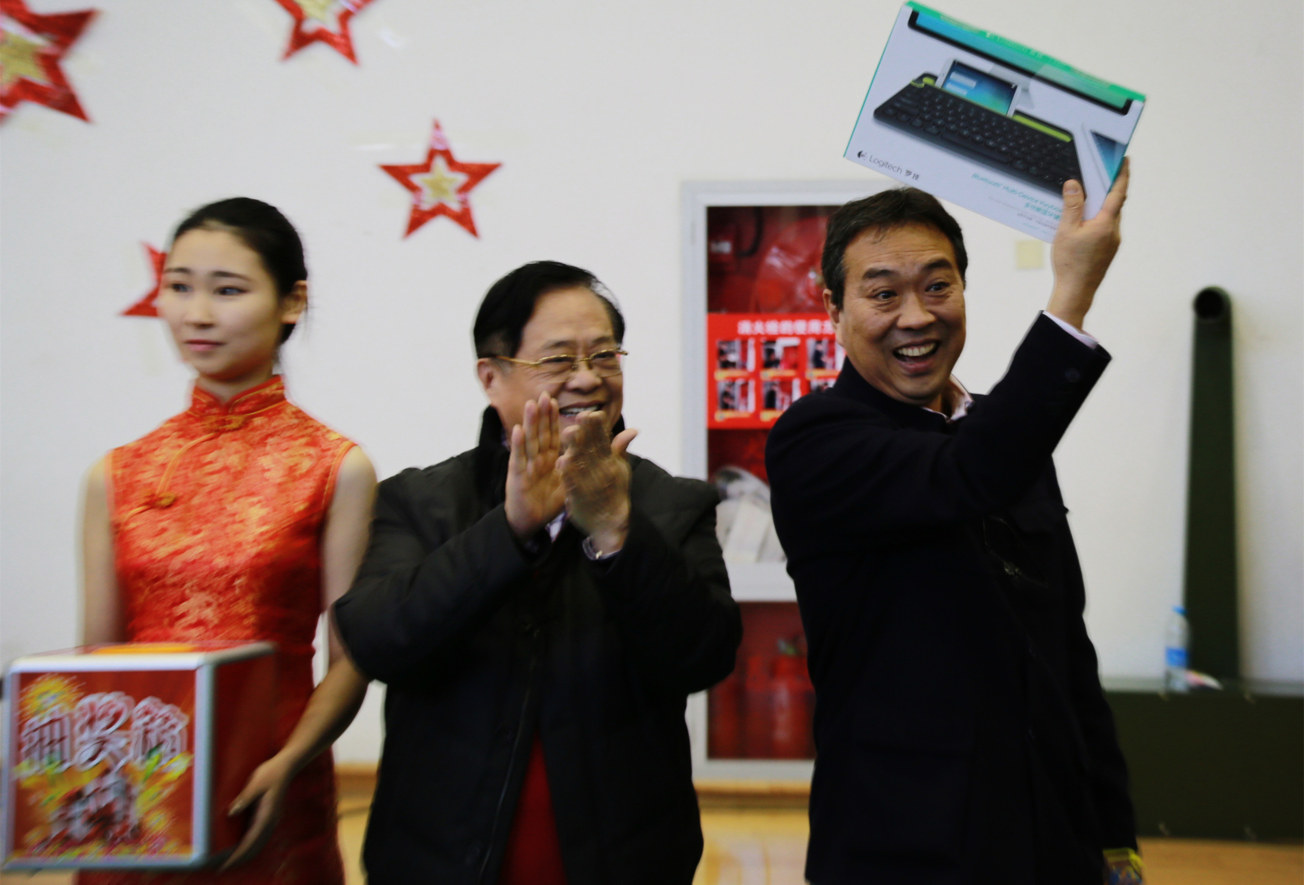 活动期间,院领导们走进学生与教职工之间,参与游戏、欣赏节目。不仅送来了祝福与问候,还为在场师生抽取了神秘奖品。秦亚青院长现场发表了新年致辞,向全体教职员工及莘莘学子致以节日的问候。