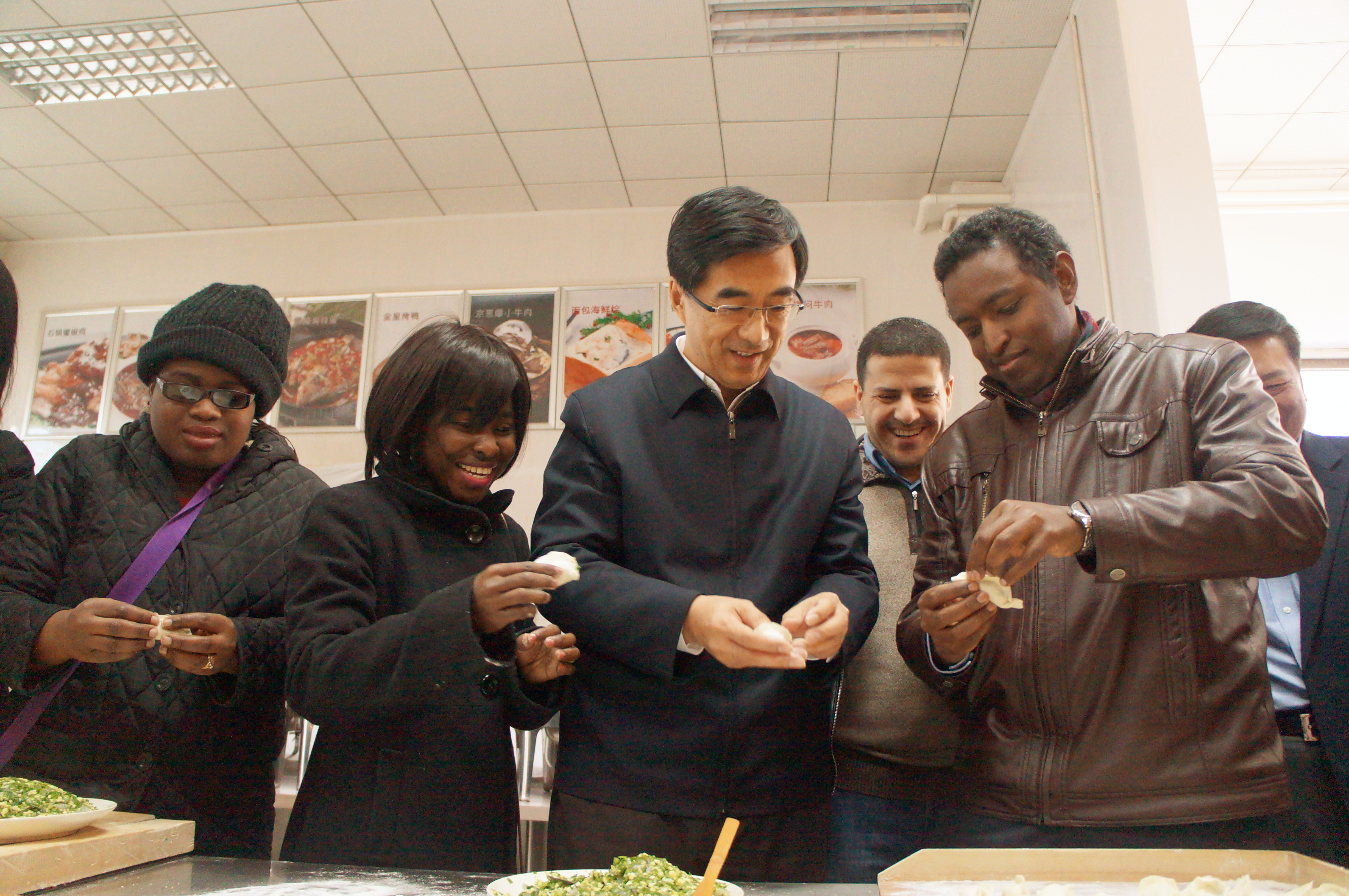 团中央第一书记秦宜智同志教留学生包饺子