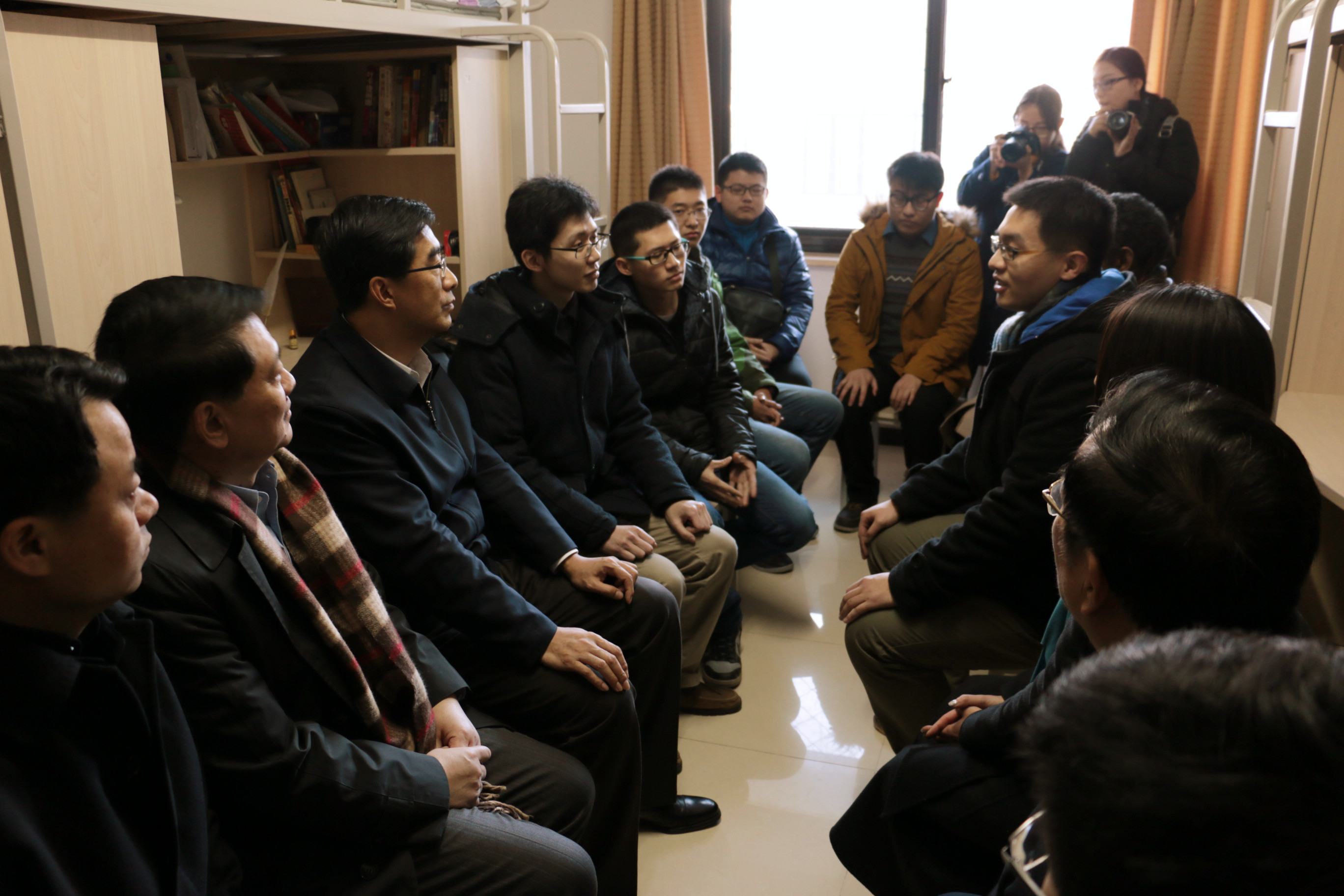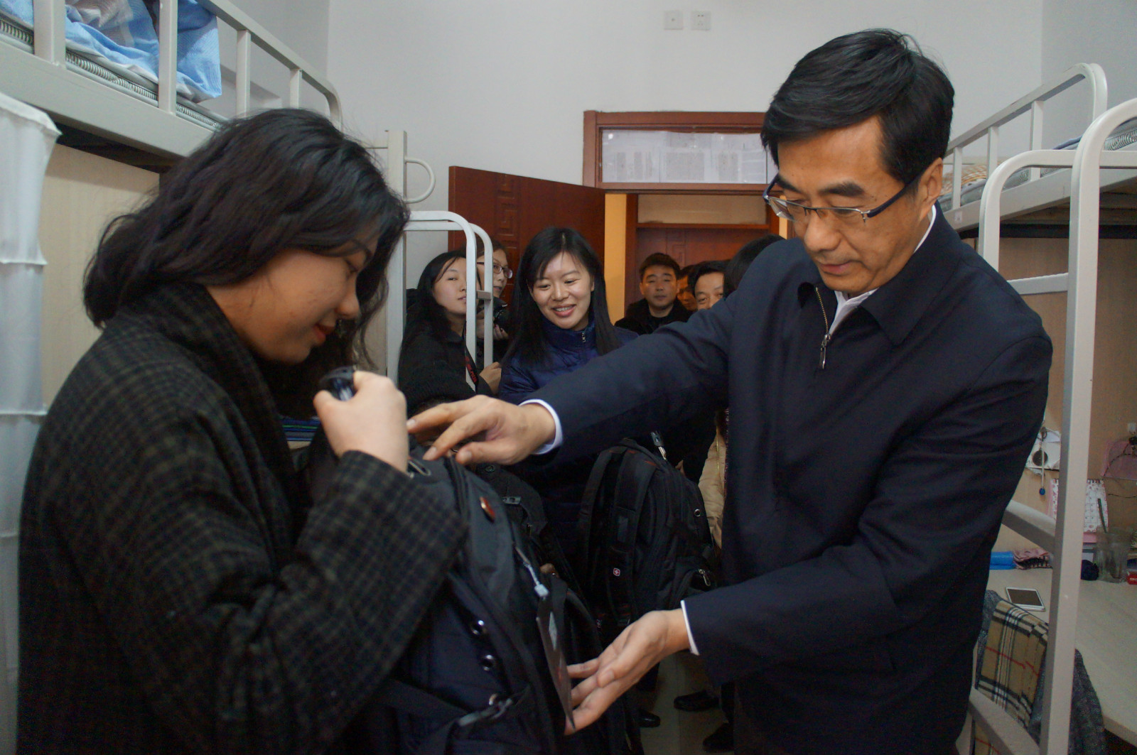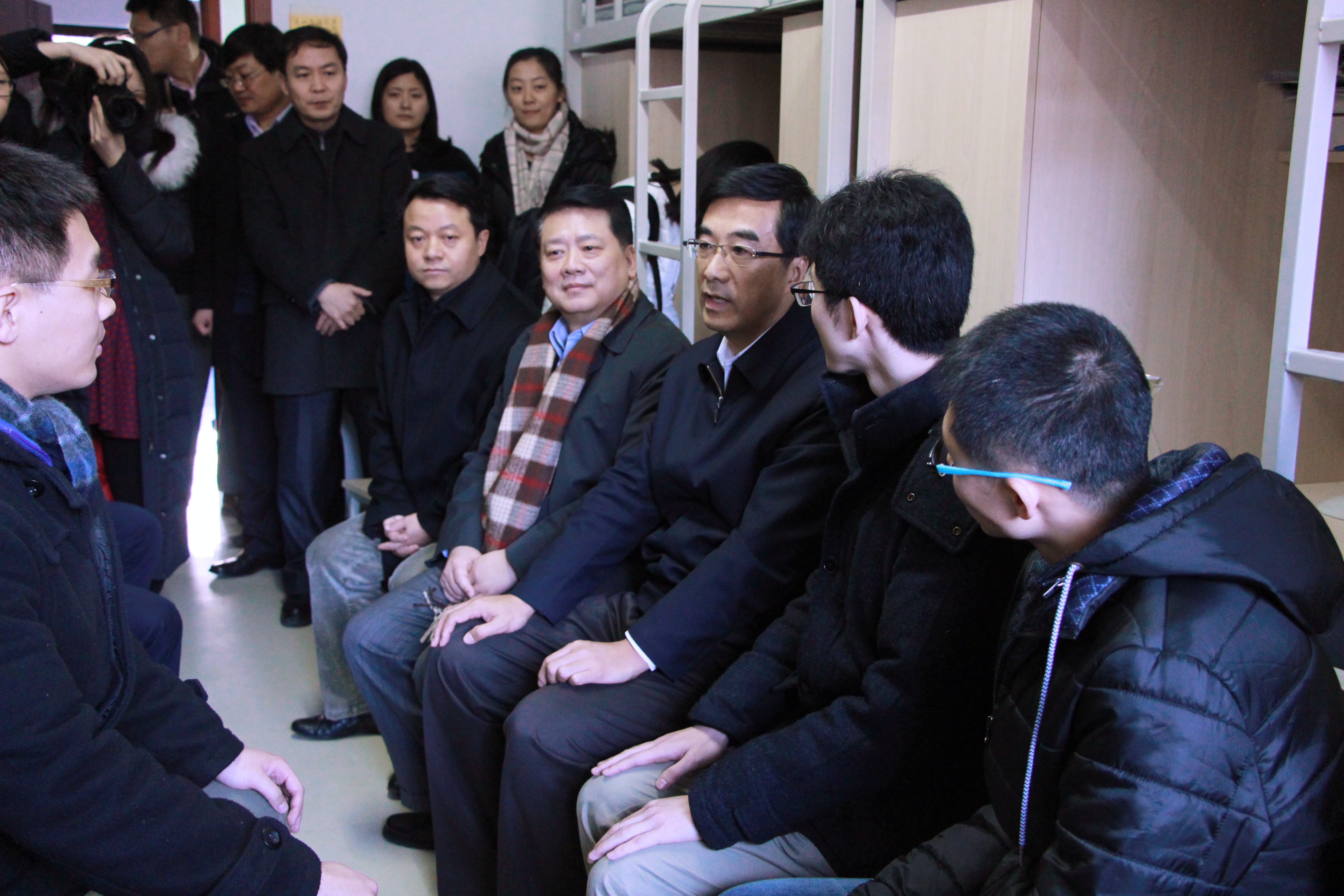 随后,秦宜智书记一行在院领导陪同下来到学生公寓看望寒假留校学生。秦宜智书记和大家围坐一起,亲切询问“家是哪里的,过春节为什么不回家?”“你是什么专业的,读几年级了?”“平时课程紧张吗?”“学校伙食怎么样?”……学生们纷纷打开话匣子,介绍自己的情况,气氛热烈。秦宜智书记还询问了beat365是否开设历史、中国传统文化等相关课程,表示beat365官方网站学生毕业后大多直接或者间接从事与外交外事相关的工作,要成为外交外事人才仅仅学好专业课是不够的,一定要学好中国的历史,花大力气学习中国传统文化。