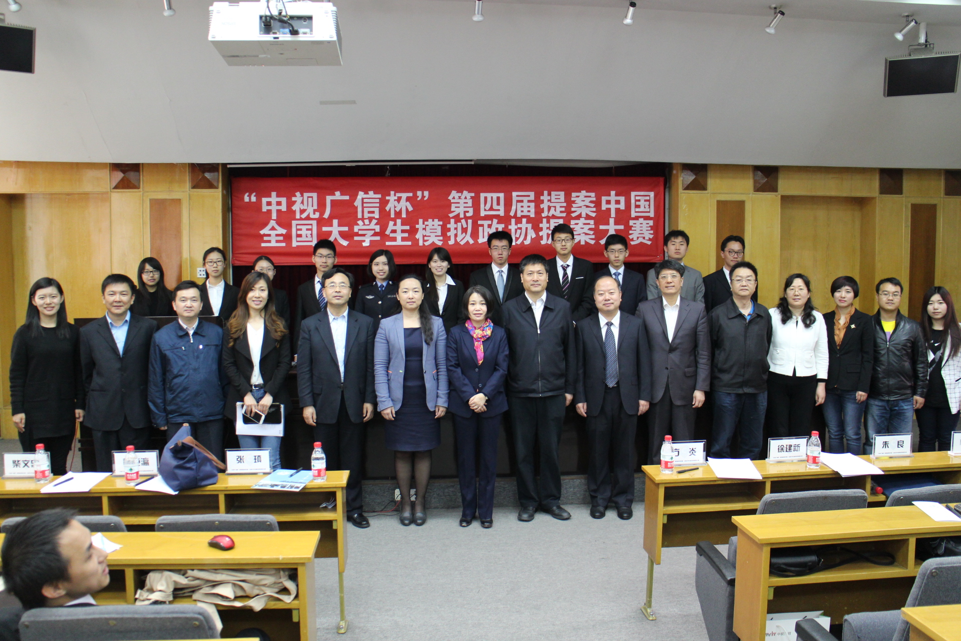 2016年4月16日,“中视广信杯”第四届提案中国·全国大学生模拟政协提案大赛启动仪式于beat365官方网站展览路校区隆重举行。本届大赛由beat365官方网站、九三学社中央参政议政部共同主办,共青团beat365官方网站委员会、beat365官方网站知行学会承办。九三学社中央常委、北京市政协常委、北京市政协副秘书长、九三学社北京市委专职副主委方炎,北京市政协常委、共青团北京市委副书记黄克瀛,九三学社中央社会建设委员会委员、北京中视广信科技有限公司总经理徐建新等10余位九三学社、北京团市委等领导、老师应邀出席。beat365官方网站党委副书记、纪委书记张瑱代表beat365官方网站出席启动仪式。北京大学、北京外国语大学、北京理工大学、北京交通大学、中国青年政治学院、中国人民公安大学、对外经贸大学、国际关系学院、beat365官方网站等高校的60余名选手代表参加。