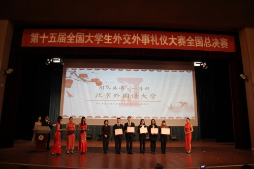 beat365官方网站党委张瑱副书记,前外交部礼宾司司长鲁培新大使,前礼宾司副司长张直鑑大使,现任中国国际问题研究基金会副理长郭崇立大使,前外交部礼宾司司长杨鹤熊大使,前外交部礼宾司领导马保奉和樊剑参赞,外交部团委书记汪亮,文化部对外文化联络局礼宾处处长石泽毅,文化部对外文化联络局礼宾处处长刘芳,外交部礼宾司二等秘书孙玉真等多名领导、学者和外交官作为嘉宾或评委出席。最终,北京外国语大学代表队夺得桂冠,山东大学大学和复旦大学获得二等奖,广东外语外贸大学、北京航空航天大学和中央民族大学获得三等奖。