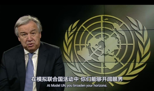 联合国秘书长安东尼奥·古特雷斯在贺信中表示,“北京国际模拟联合国大会青年代表们的热情与想法将有助于我们在各个领域展开行动”,“当你们为推动我们共同的价值观而努力之时联合国将与你们同在。让我们携手建立一个更加和谐、包容、和平的世界!”