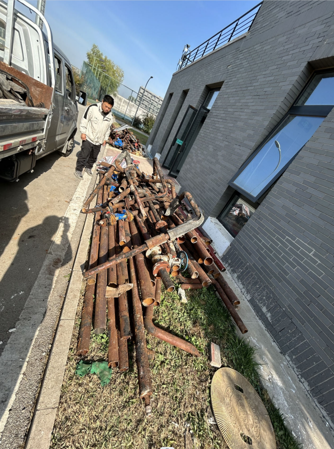 行政楼供暖废旧管线,据估算回收管线约为2吨左右。
