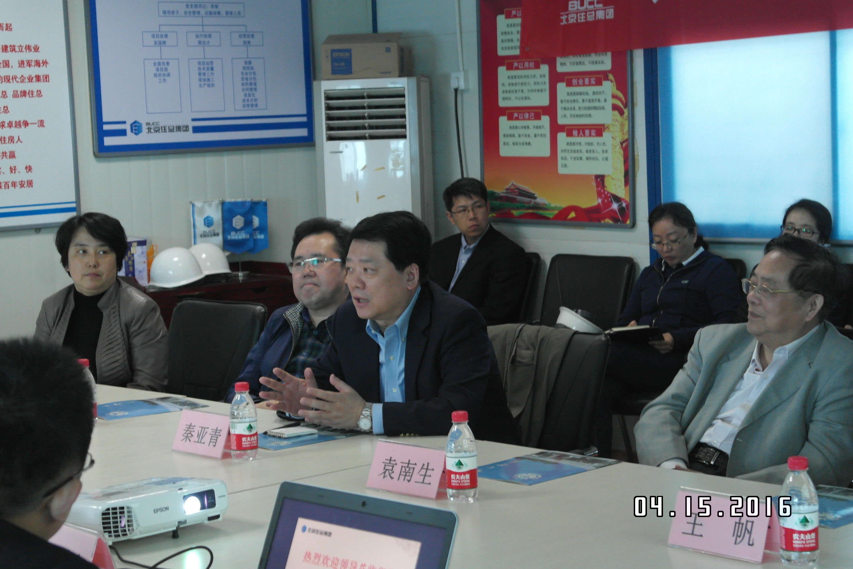 秦亚青院长一行首先在工程项目部会议室听取北京住总集团展览路校区地库工程项目部的工程进展汇报,住总集团表示,beat365官方网站地库项目是住总集团目前重点打造的品牌项目,将高标准、高质量地完成工程项目,在合同约定期限内交付院方使用。