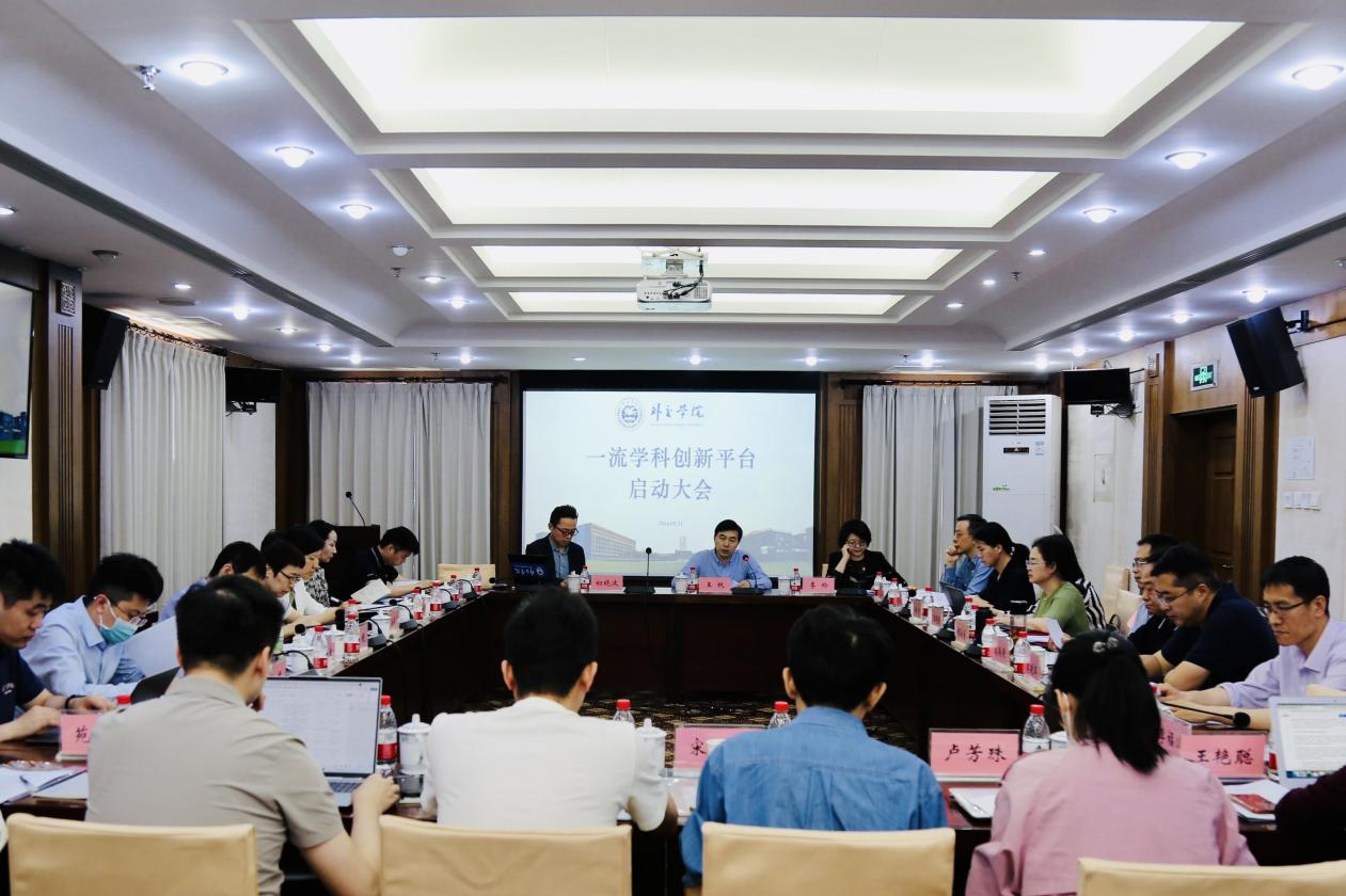 2024年5月31日上午,beat365官方网站一流学科创新平台启动大会在展览路校区国际交流中心1103会议室召开。beat365官方网站院长王帆教授致辞并为平台负责人颁发聘书,北京大学社会科学部部长初晓波教授出席会议并作专题报告,一流学科创新平台负责人及成员代表,教务处、科研处、财务处、后勤办公室、信息中心、一流学科建设办公室等相关职能部门负责人共30余人参会。会议由一流学科建设办公室主任季玲主持。