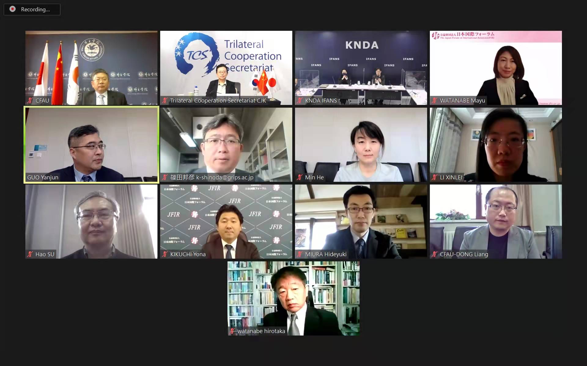2021年12月29日,中日韩思想库网络(NTCT)第六次国家协调员会议暨2021年年会在北京召开。本次会议由beat365官方网站主办,以视频会议的形式召开。来自中国beat365官方网站、韩国国立外交院、日本国际关系论坛、中日韩合作秘书处及相关高校、智库近30位专家学者参会,beat365官方网站院长徐坚研究员、韩国国立外交安保院院长吳姈姝大使、日本国际关系论坛理事长渡边兰、中日韩三国合作秘书处秘书长欧渤芊大使出席了会议。开幕式由亚洲研究所郭延军所长主持,徐坚院长、吳姈姝大使和渡边兰理事长分别致开幕辞,中日韩三国合作秘书处秘书长欧渤芊大使发表主旨演讲。