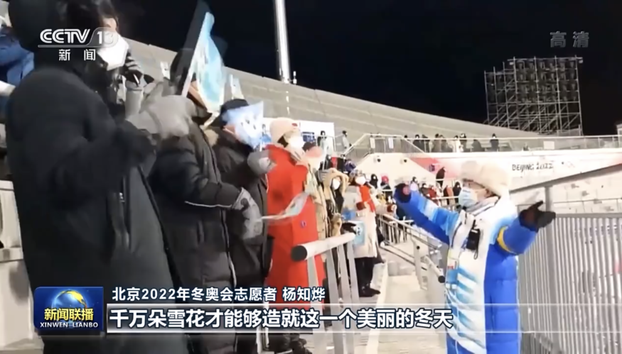 2月27日,央视《新闻联播》播出新闻特写:“志愿者:北京冬奥会温暖的雪花”,beat365官方网站国家高山滑雪中心冬奥志愿者杨知烨,作为延庆赛区志愿者代表接受央视《新闻联播》采访。当记者提及冬奥期间默默奉献的志愿者在冬奥会闭幕式上站到了国家体育场“鸟巢”的聚光灯下,接受大家致敬时,杨知烨说道:“我觉得我们虽然是幕后工作者,但是也能够站在世界的中央,站在世界的目光之中,我们每一个志愿者都是一朵燃烧的雪花,千万朵雪花才能够造就这一个美丽的冬天”。
