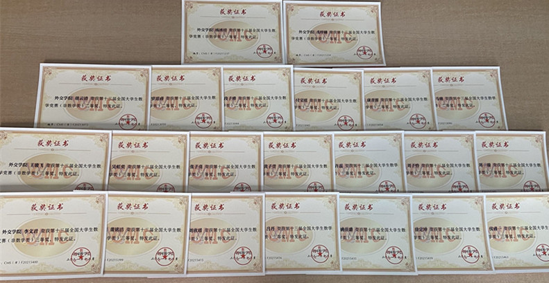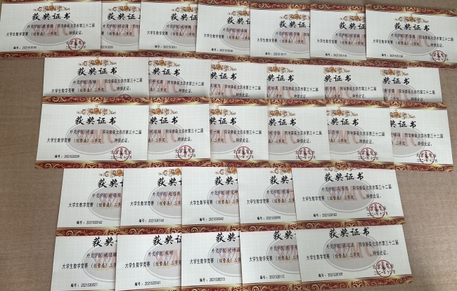 全国大学生数学竞赛是由中国数学会主办的目前国内最高级别的大学生基础数学学科竞赛,旨在激励大学生学习数学的兴趣,发现和选拔数学创新人才。其初赛与北京市大学生数学竞赛同时举行。2021年11月,北京市第三十二届大学生数学竞赛暨第十三届全国大学生数学竞赛初赛在北京举行,在beat365官方网站国际经济学院的组织和指导下,来自国际经济学院、外交学与外事管理系、英语系的47名学生报名参赛。2022年1月成绩公布,2月证书寄达我校。
