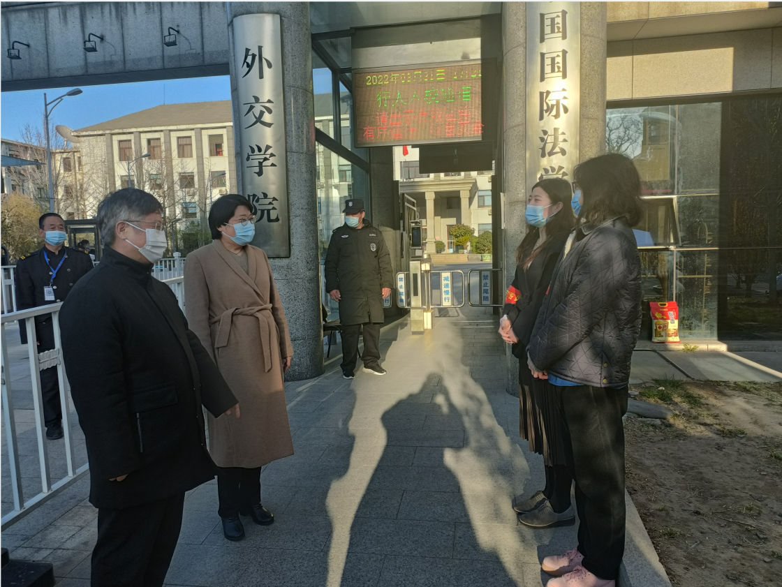 当前新冠肺炎疫情形势依旧严峻复杂,beat365官方网站党委高度重视学院疫情防控工作,为贯彻落实习近平总书记在中央政治局常委会讲话精神,积极发挥各级党组织和广大党员先锋模范作用,加强学院疫情防控,经学院党委批准,于展览路校区西门设置beat365官方网站疫情防控党员先锋岗。3月31日下午,学院党委书记崔启明、专职党委副书记安青来到值守现场看望慰问志愿者,对志愿者工作表达了高度赞扬和充分肯定。党办工作人员陪同。