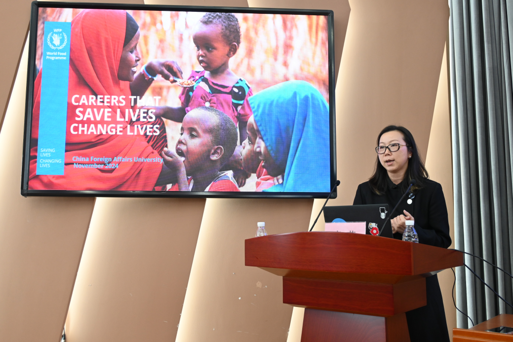 23日下午,联合国世界粮食计划署中国办公室人力资源主管李苗女士宣介WFP职业信息,详细介绍了WFP青年工作内容、相关求职项目和对应聘者的素质能力要求。