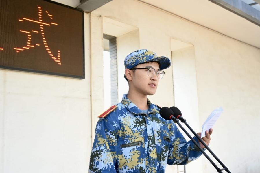军训标兵代表国际法系李靖澜同学发言表示,会保持军训期间的拼劲干劲,树牢外交理想,勇担时代责任。