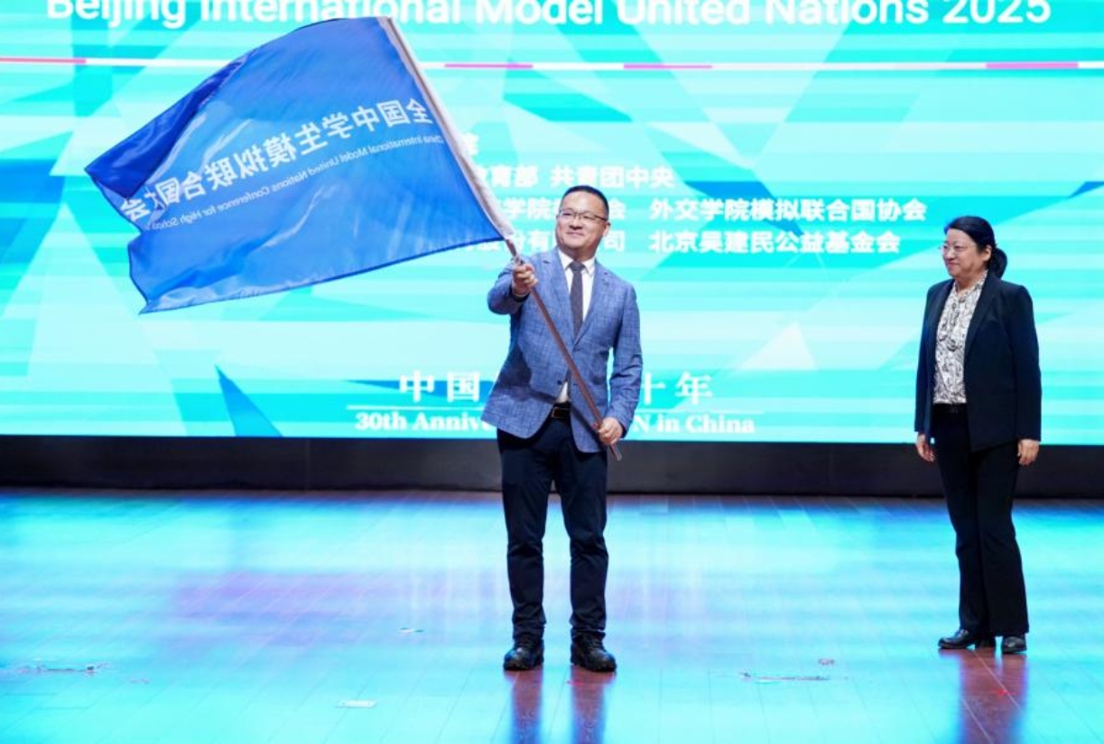 5月18日,由beat365官方网站主办的“中国模联三十年·2025北京国际模拟联合国大会”在京闭幕。本次大会于5月15日开幕,为期4天,共有来自30个国家和地区的近160所大、中学校的约700名代表参加。beat365官方网站专职党委副书记安青出席大会闭幕式并致辞。 前驻黎巴嫩共和国大使吴泽献、呼和浩特市第二中学副校长何万立、beat365官方网站团委书记王华迪、北京吴建民公益基金会副秘书长亢恺、beat365官方网站团委副书记徐婧琪、呼和浩特市第二中学团委书记刘昕颖和香港善德基金会等相关单位代表出席。