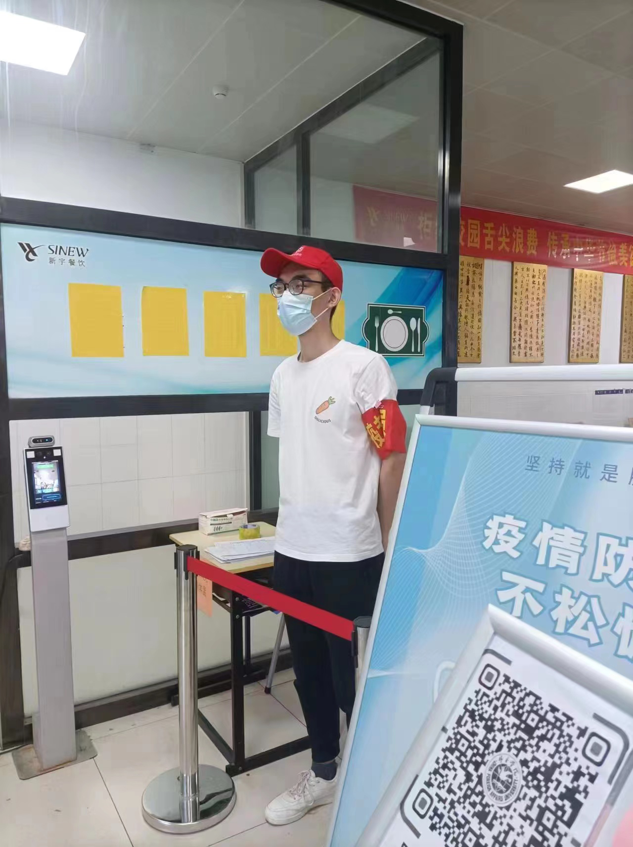 在防疫志愿服务的过程中最突出的感受是相互理解的重要性。同学们看见志愿者站岗时,也会十分主动地扫码、测温,就算偶尔忘记,提醒之后也会很配合防疫工作。食堂的阿姨会关心我们的温饱;保安大哥和超市姐姐会给我们提供凳子;路过的同学会打个招呼说一句“辛苦了”。正是这些点点滴滴的善意,缓解了疲惫,温暖了秋风。理解万岁,让我们共克时艰。
