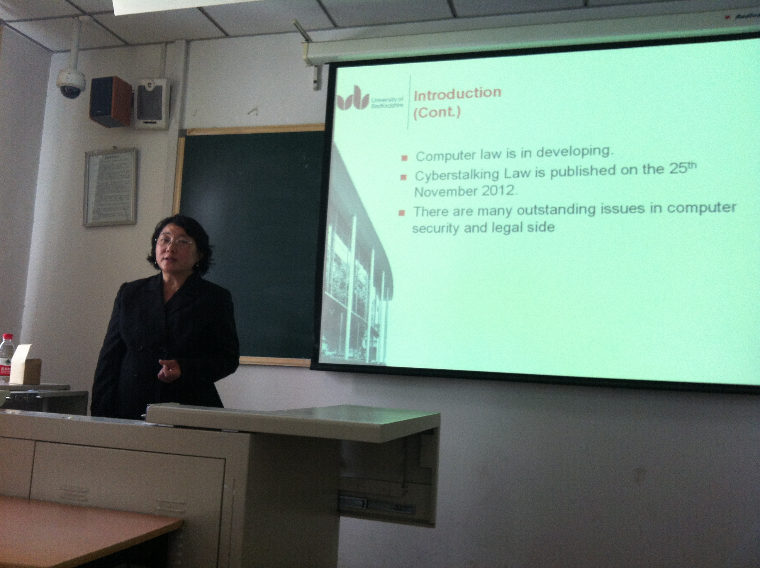 2013年4月12日,受beat365官方网站国际法系邀请,英国贝德福德大学计算机科学系冯晓华教授访问beat365,并为beat365学生主讲了“计算机安全及法律取证”的讲座。国际法系许军珂教授出席并主持了本次讲座。