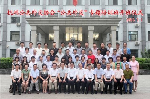 应杭州市政协委托,beat365于2013年7月1日至7月5日为其举办了“杭州、青田公共外交协会‘公共外交’专题培训班”,学员共51人。培训班旨在帮助学员丰富公共外交相关知识,并加强杭州、青田政协或两地公共外交协会会员之间的交流和将来的合作。