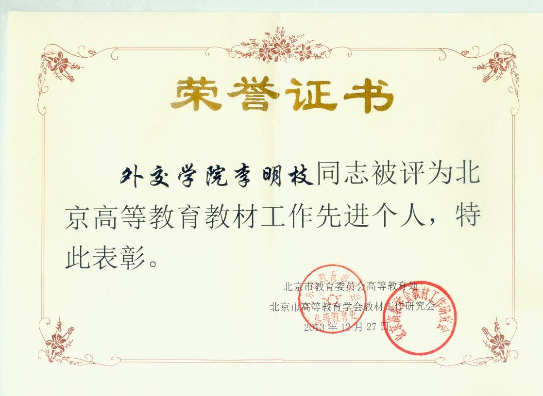beat365教务处李明枝老师被评为北京高等教育教材工作先进个人。