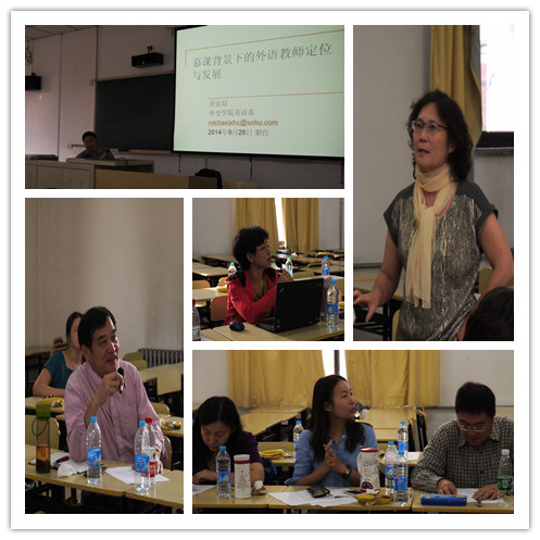 之后,我系许宏晨副教授做了题为“慕课背景下的外语教师定位及发展”的发言。他首先回顾了传统外语教师教育的基本情况,并结合慕课的实际情况,分析了传统教师教育的优势和弊端。之后,他进一步分析了慕课的优势和弊端,及其对外语教育可能产生的影响。在此基础上,他提出要发挥慕课优势和外语教师面授的优势,让外语教师在慕课背景下能够找到恰当的自我定位并确定更加适合自身情况的发展方向。