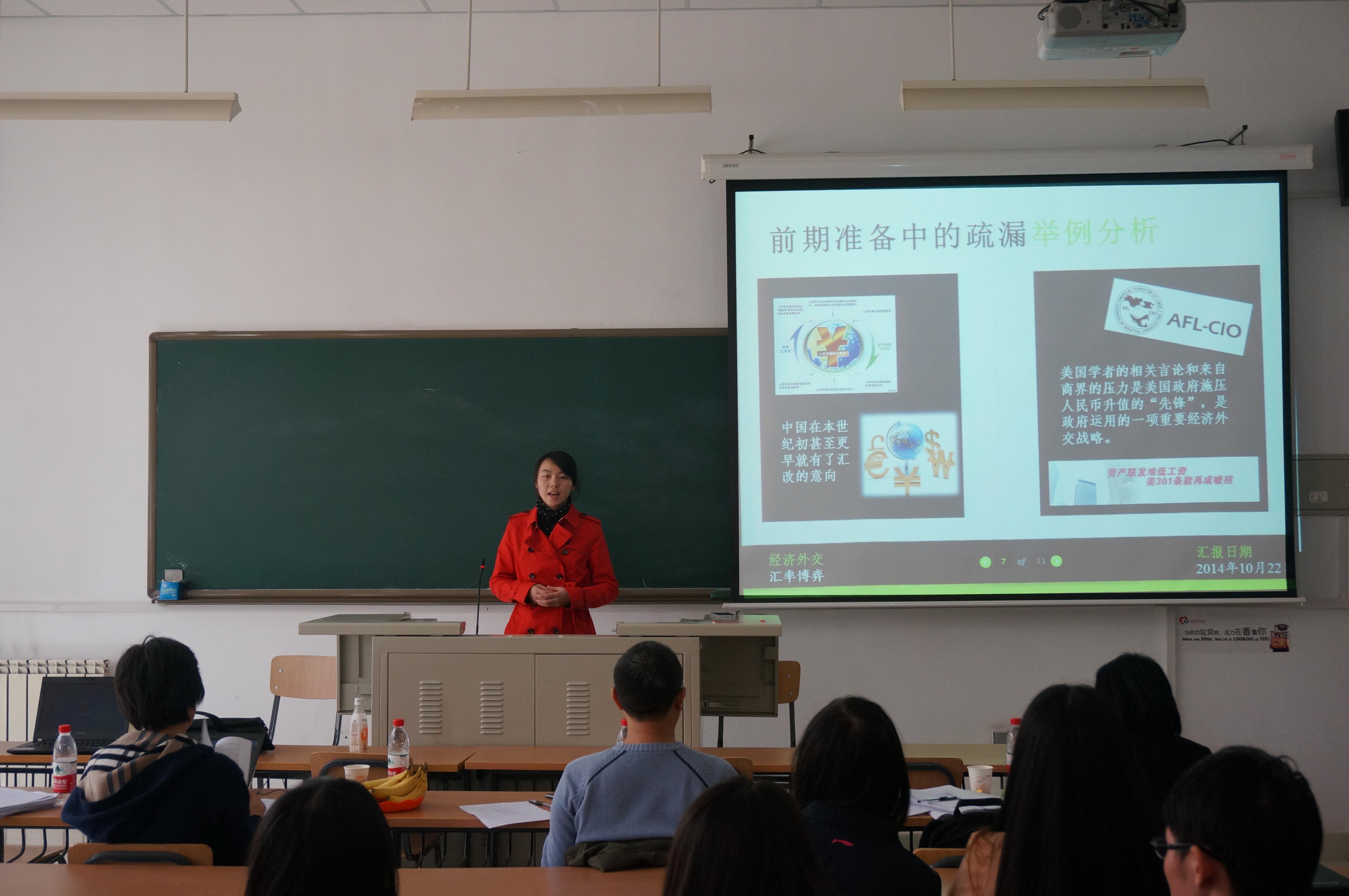 来自国经的九组优秀选手参加了此次比赛,比赛过程中,各组选手就中国-东盟自贸区建设、多边金融外交、中国对非援助、清洁发展机制国际合作、中美汇率和贸易保护等多个重要经济外交议题展开精彩阐述。在评比过程中,院长助理、教务处高飞处长也亲临现场莅临指导,