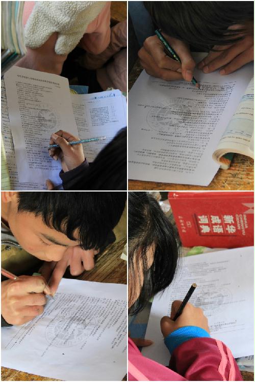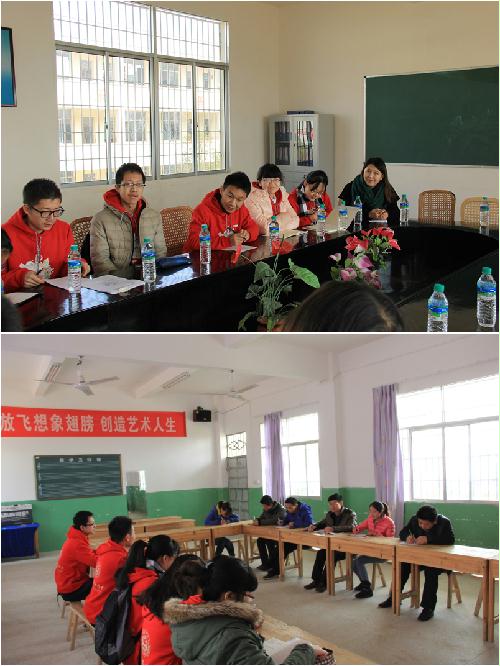 为了全面的了解情况,同学们采取了多种的调研形式:听一堂课、开一场座谈、填一份问卷、上一堂公开课。在听课环节,同学们感受到了当地教师在教学方法、教学内容等方面与优秀中学之间存在一定的差距。同学们思考如何尽其所能让孩子们对英语有全新的认识,提高英语学习的兴趣,掌握正确的学习方法。