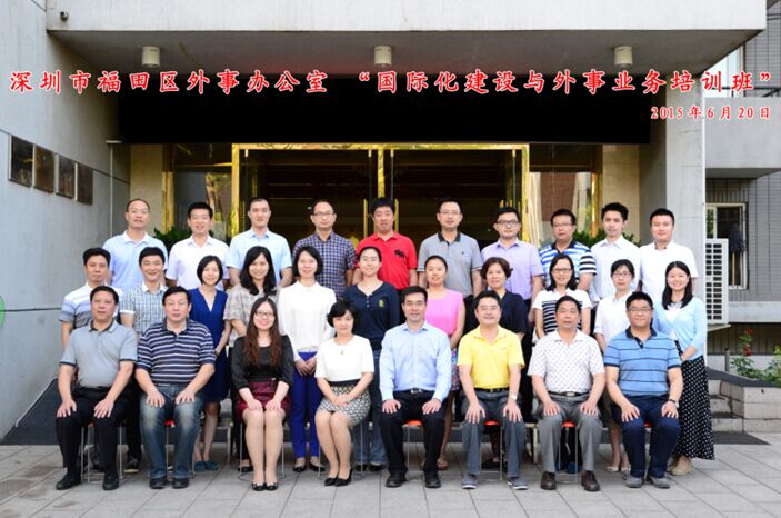 受深圳市福田区外事办公室委托,国际交流中心于2015年6月15日至20日为其成功举办首期“国际化建设与外事业务”培训班。该班是beat365与深圳市福田区政府的首次合作,也是首次为区(县)级政府部门举办培训,双方领导都给予了高度重视。beat365徐赤宇副院长出席开班仪式并讲话,高飞院长助理出席结业仪式并讲话;福田区委常委吴晶作为带队领导,全程参与课堂学习及研讨。
