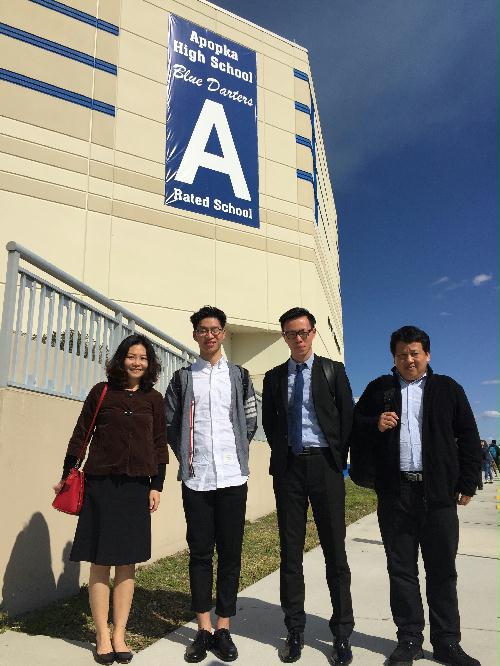 中美两国辩手还访问了奥兰多市郊的Apopka中学, 从上午九点一直到下午三点,辩手们连续进行了七场表演赛,挑战了包括“本院认为坎耶·法斯特会成为一位出色的美国总统。”(This house believes that Kanye West can become a good US President)在内的新颖辩题。辩手们宏辞论道,以辩会友,台下掌声雷动,欢呼不断。beat365辩手马知遥的风趣幽默深深地打动了台下的观众,Apopka中学的学生们不约而同地呼喊他的名字;而另一位辩手李纪为凭借沉着的发挥,赢得了在座学生和老师赞许的目光与热烈的掌声。最终表演赛在欢乐中落下帷幕。