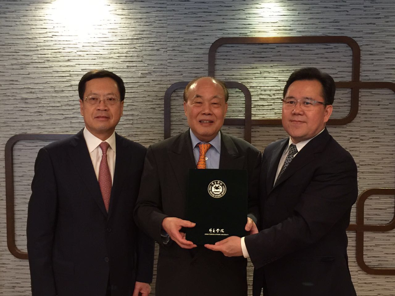 4月25日上午,江瑞平副院长与香港家全七福酒家有限公司董事总经理徐维均在香港会面,并向徐先生颁发第四届董事会董事聘书和beat365官方网站荣誉教授聘书,嘉里建设有限公司主席兼首席执行官黄小抗出席。
