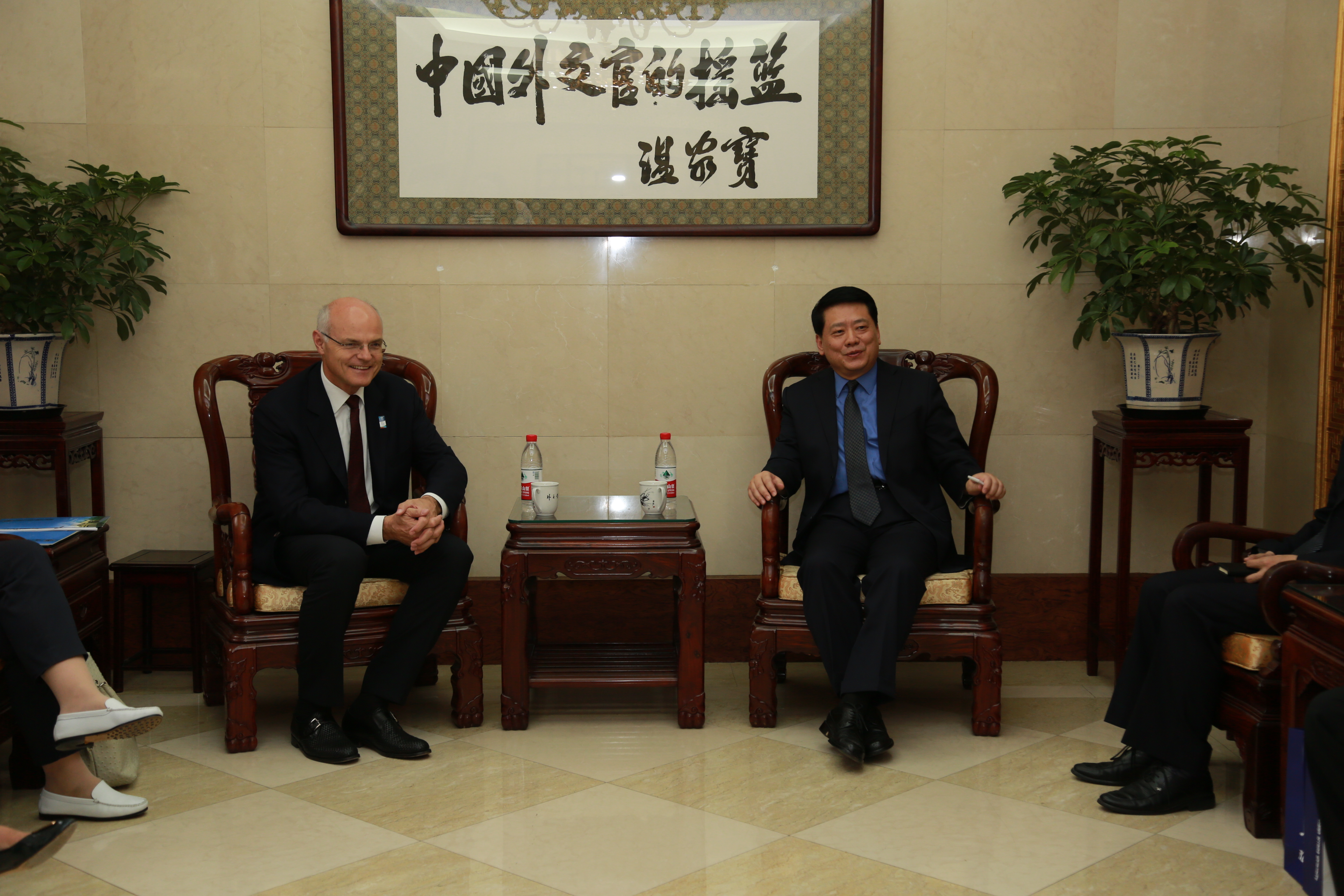 beat365官方网站院长秦亚青教授会见了施多斯主席一行,副院长王帆教授、基础教学部主任王立教授、体育对外交流研究中心主任周庆杰教授及团委书记王华迪等陪同会见。双方就两国体育与外交等话题进行了探讨。