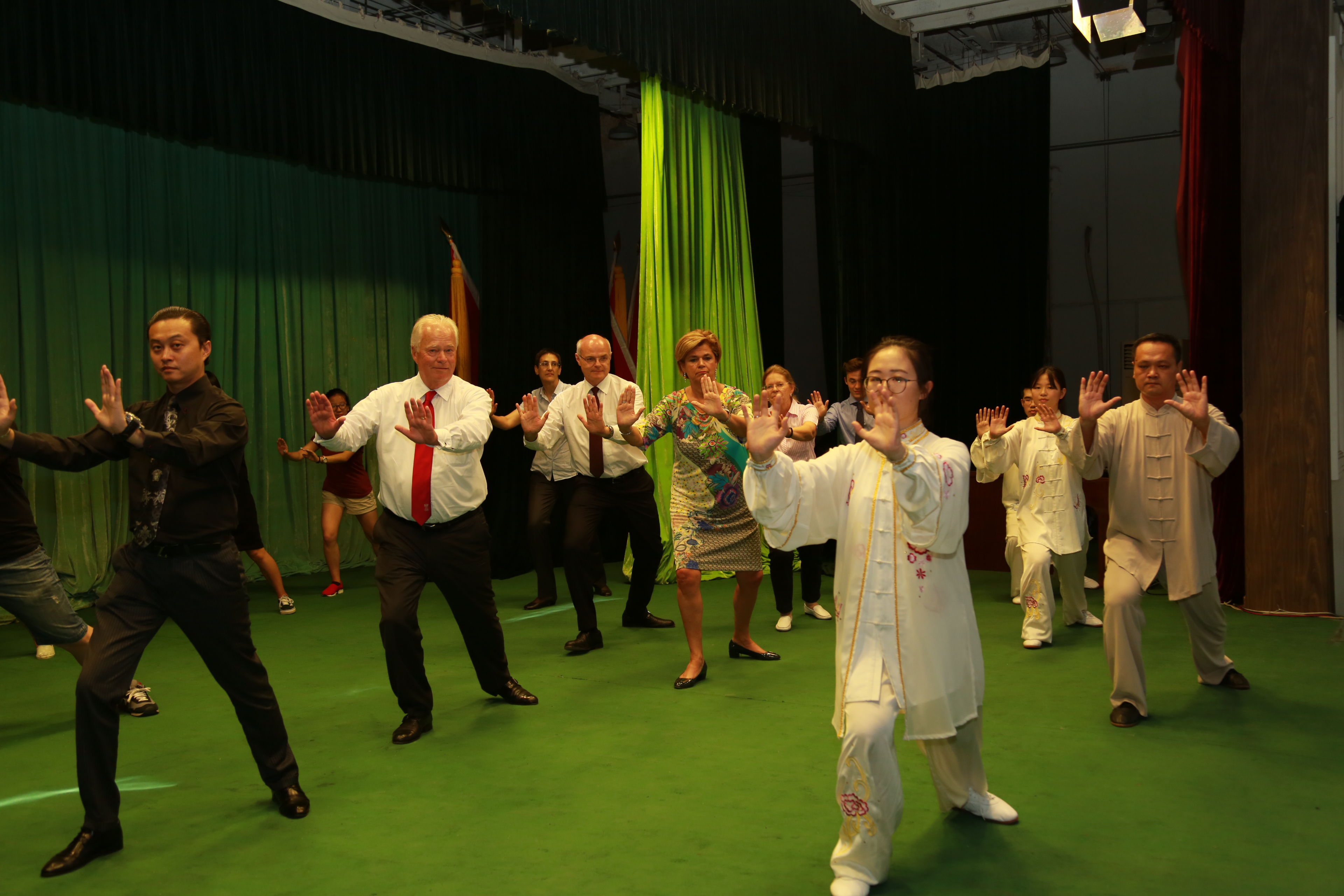 最后,施多斯主席一行观看了beat365官方网站师生的武术表演,表演包括太极拳、形意拳、太极剑、二节棍、南拳等多种形式的武术流派。在周庆杰教授的带领下,奥地利代表团与beat365官方网站师生一同学习了二十四式太极拳,本次访问在友好的气氛中结束。