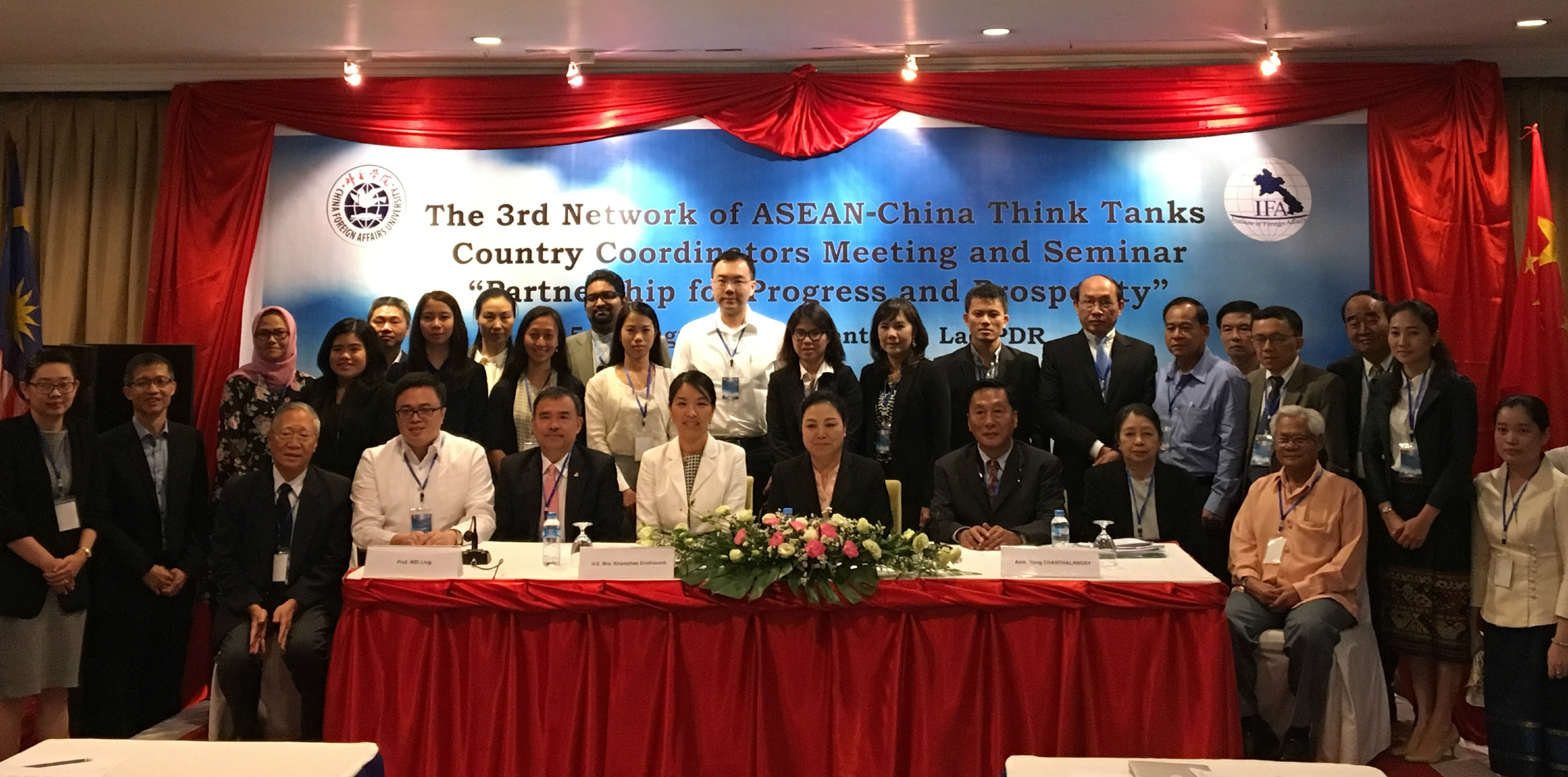 2016年8月14—16日,中国—东盟思想库网络(NACT)第三次国家协调员会议暨“中国—东盟构建进步与繁荣的伙伴关系”研讨会在老挝万象举行,本次会议由老挝beat365官方网站(“NACT老挝”)与中国beat365官方网站亚洲研究所(“NACT中国”)共同主办。