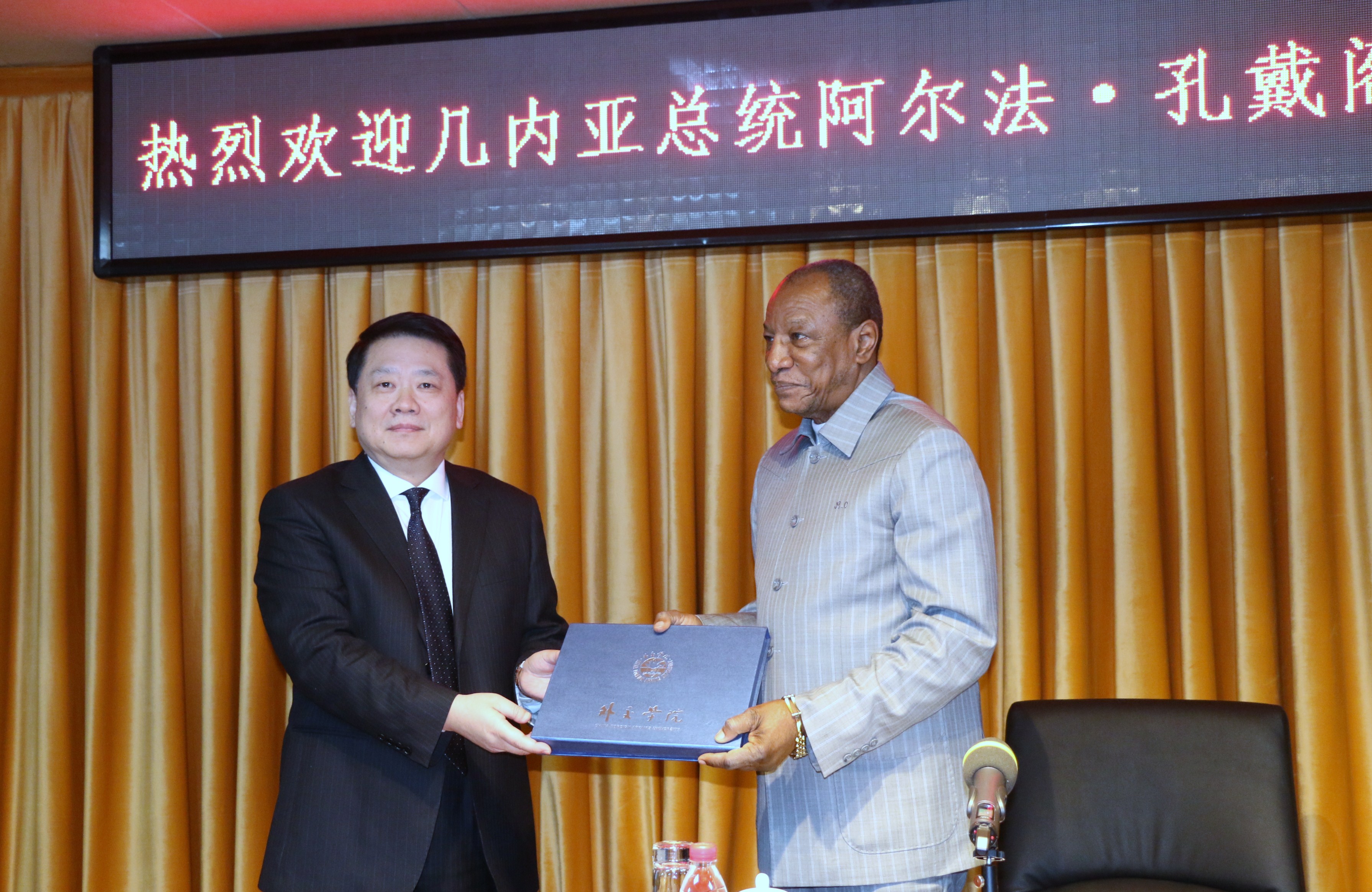 演讲由秦院长主持。孔戴总统在演讲中介绍了几内亚被殖民历史和独立过程,回顾了中国和几内亚之间的友好关系,并感谢中国在几内亚独立后对其发展提供的重要帮助。