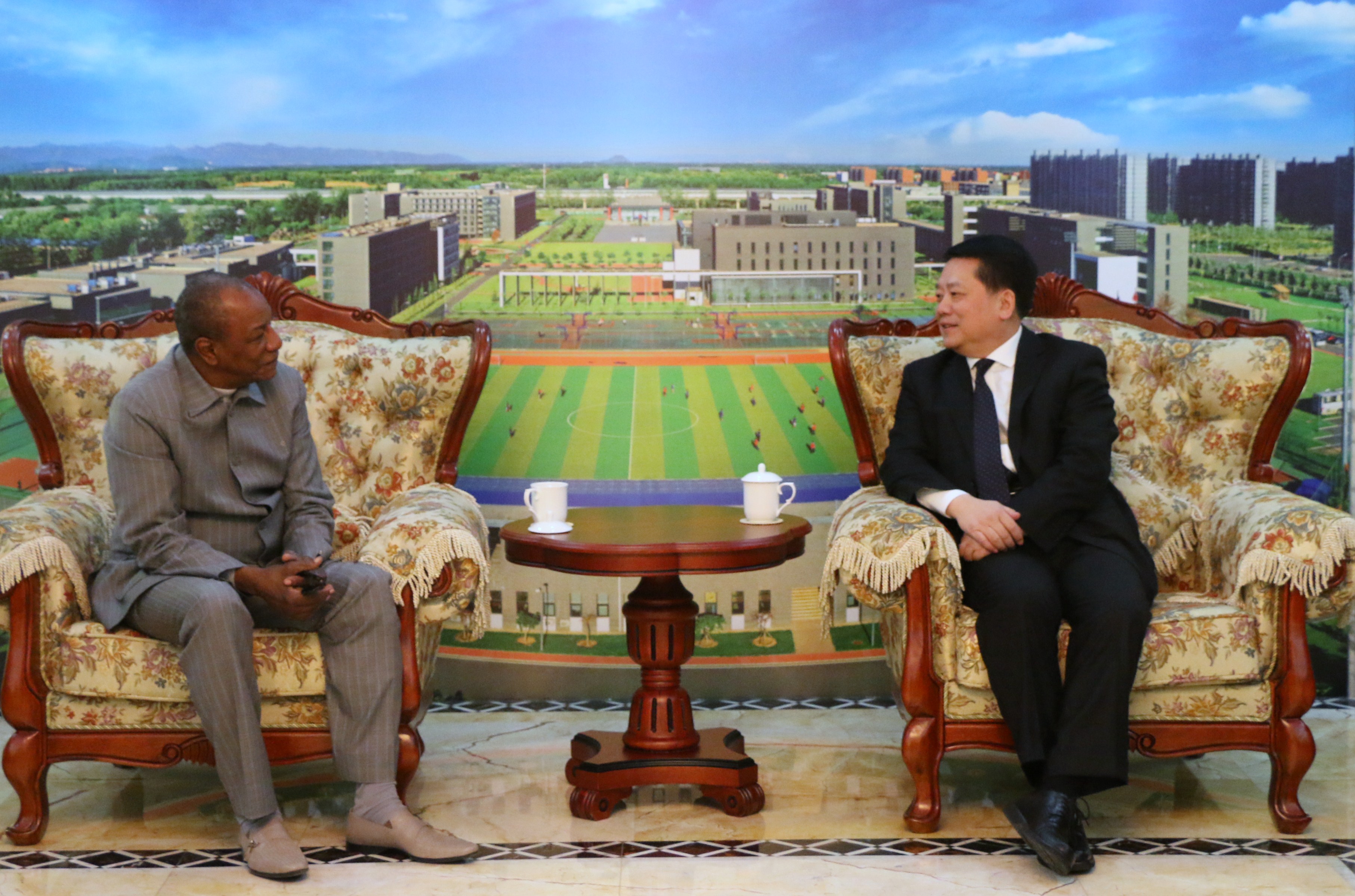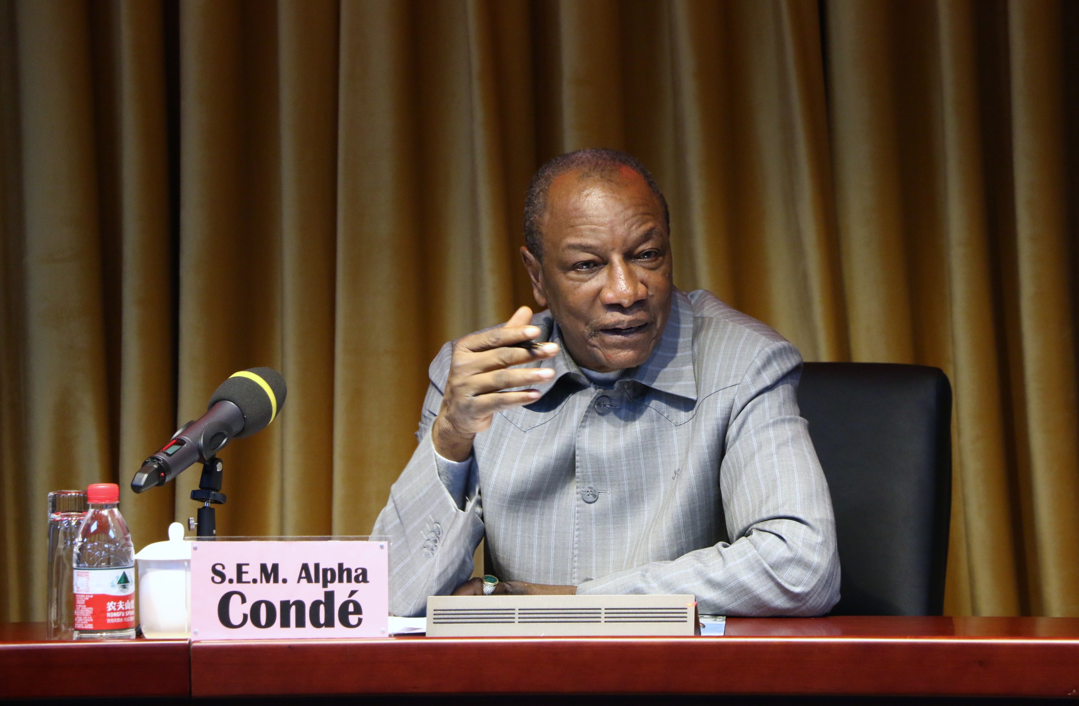 2016年10月31日下午,几内亚总统阿尔法·孔戴(S. E. M. Alpha Condé)阁下率团到访beat365沙河校区,并发表题为“中几双边关系、非洲和平与安全形势”的演讲。