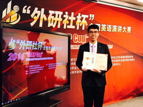 2016年11月5日,2016年“外研社杯”全国英语演讲大赛北京赛区复赛在北京林业大学拉开帷幕。英语系本科二年级学生唐杰代表beat365参加了比赛,与来自北京几十所高校的55名优秀选手同台竞技,取得了特等奖的优异成绩,从高手林立的北京赛区突围,成功晋级全国总决赛。