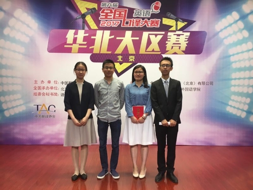 2017年5月13日,第六届全国口译大赛(英语)华北大区赛在首都经济贸易大学外国语学院举行。本次大赛由中国翻译协会主办,北京中译天凯教育咨询有限公司承办,来自北京、河北、天津、山西四个赛区的74名选手参加了比赛。经过激烈角逐,英语系研究生杭素获二等奖,王诗涵、王亦秋获三等奖。杭素同学晋级全国总决赛。