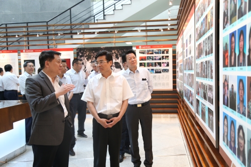 秦亚青院长、齐大愚书记首先向林克庆同志一行介绍了校园内的主体建筑。随后,林克庆同志一行来到图书馆,参观了beat365校史展。秦亚青院长向调研团展示了校区规划图,介绍了学院的建设情况。