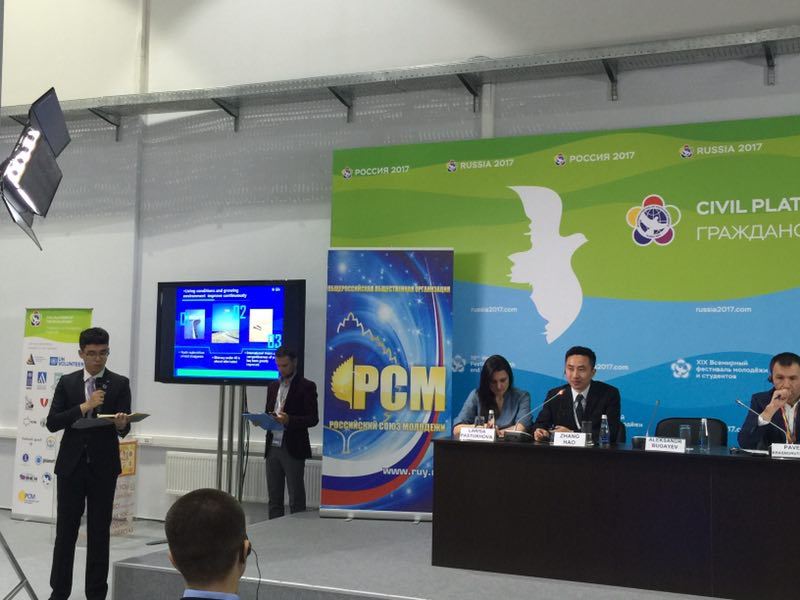 活动期间我校学生代表参与了中国国家展台与友谊集市开展首日、次日与最后一日的志愿服务工作。为了更好地向世界展示中国形象,出发前我校学生代表就为本次活动进行了大量前期准备工作,为中方展台和友谊集市准备了包括寓意和平友好的原创诗词及书法作品在内的具有中国特色的纪念品及工艺品。我校学生还作为中方青年代表受邀接受央视俄语频道采访,介绍临行前的准备情况。