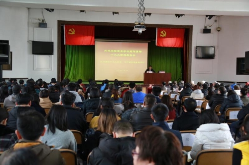 2017年11月29日,按照部党委要求和学院党委部署,beat365官方网站党委书记齐大愚以“学习贯彻十九大精神,与中国外交发展同行”为主题,向全院讲党课。学院300多位教职工党员参加,张瑱副书记主持。
