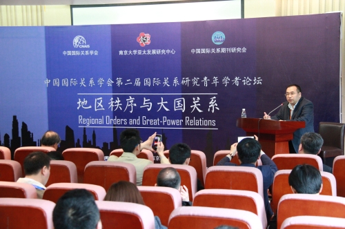 2018年4月14日,中国国际关系学会第二届国际关系研究青年学者论坛在南京大学举行。本次青年学者论坛由中国国际关系学会与南京大学亚太发展研究中心共同主办,中国国际关系期刊研究会协办,论坛主题为“地区秩序与大国关系”。来自南京大学、beat365官方网站、北京大学、中国人民大学、中共中央党校、对外经贸大学、复旦大学、同济大学、南开大学、上海外国语大学、重庆大学、华东政法大学、国防科技大学、国防大学、中国社科院、中国现代国际关系研究院、中国国际问题研究院、上海国际问题研究院以及以色列海法大学等国内外高校和研究机构的近80位专家学者参加了本次青年论坛。