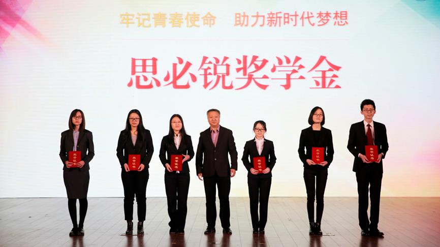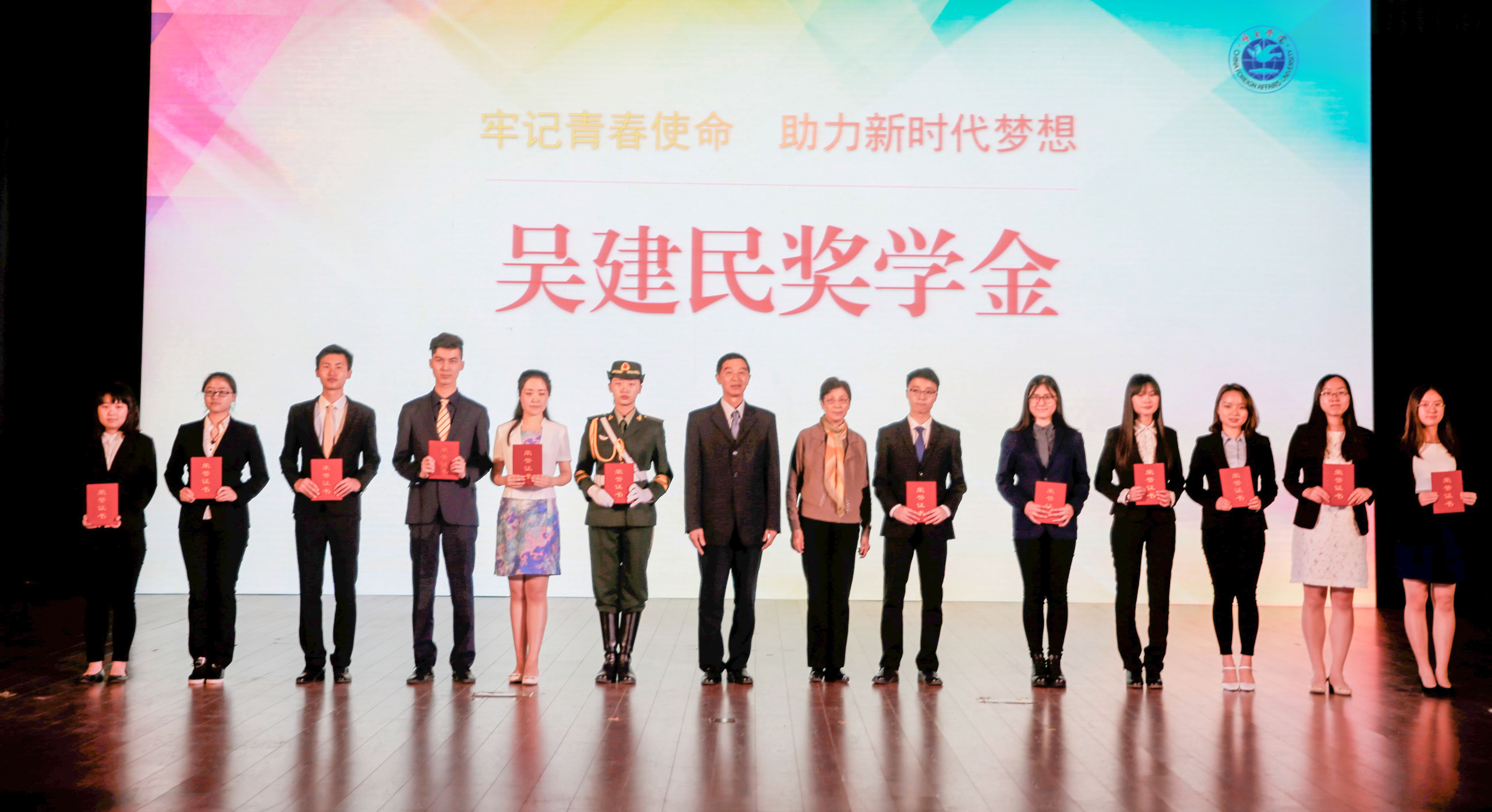 北京吴建民公益基金会施燕华会长、吴建胜理事长为吴建民奖学金获奖学生代表颁奖