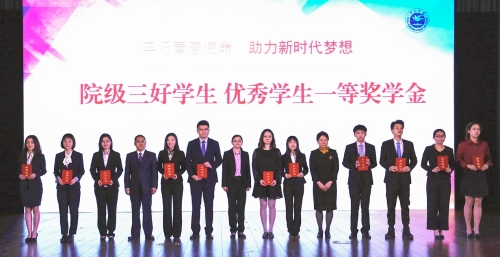 学院领导和嘉宾以及各院(系、部)主任和书记等为获奖学生代表颁发荣誉证书。