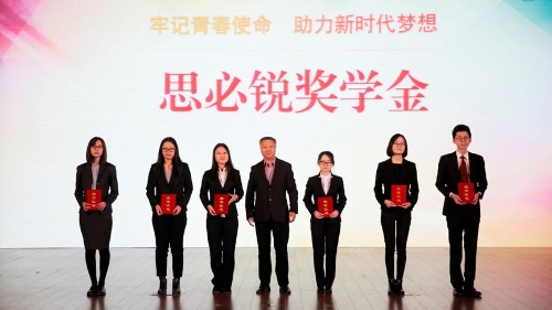 北京思必锐翻译公司副总经理许立群先生为思必锐奖学金获奖学生代表颁奖