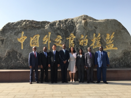 会议结束后,大使们饶有兴致的参观了学校,并在温家宝总理题写的“中国外交官的摇篮”石刻前合影留念。