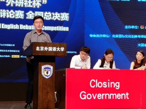 “外研社杯”全国大学生英语辩论赛由共青团中央学校部、全国学联秘书处、北京外国语大学主办,外语教学与研究出版社承办。该项赛事创办于1997年,已连续举办21届,是国内级别最高、参与最广、竞争最大的辩论比赛。本届比赛从2017年10月开始,历经校园选拔赛和地区赛,最终109支队伍晋级全国总决赛,群雄逐鹿、巅峰对决。