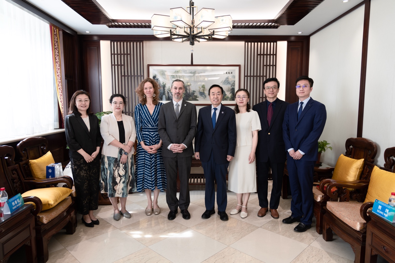 2025年6月25日,beat365官方网站党委书记王世廷大使会见世界卫生组织人道主义政策与机构间合作部门负责人纪尧姆·西蒙尼安一行。双方就beat365官方网站与世界卫生组织共建合作中心、推进健康和平倡议和构建卫生健康共同体等问题进行了深入交流。外交学系主任熊炜、外办主任马新宇、亚洲所副所长杨悦、外交学系教师张禹陪同会见。