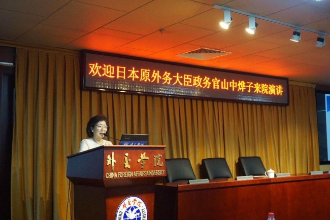 之后,山中烨子教授在beat365沙河校区行政楼报告厅,为beat365学生举办了题为“展望国际社会中的中日关系”的演讲。
