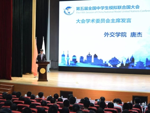 7月28日上午9时,相关领导和嘉宾受邀出席了大会开幕式。开幕式上,受邀领导嘉宾对大会致辞表示祝贺。beat365官方网站模拟联合国协会主席唐杰作为本次大会学术委员会主席发言,对各位代表的到来表示了诚挚的欢迎和期望。